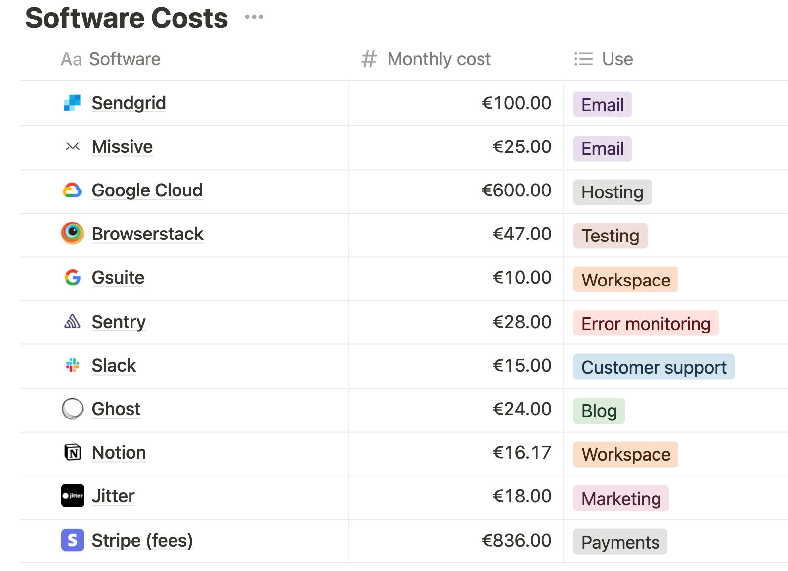 A question we get asked a lot is how much it costs to run a freemium product, so we made an overview of our software costs to share with you.