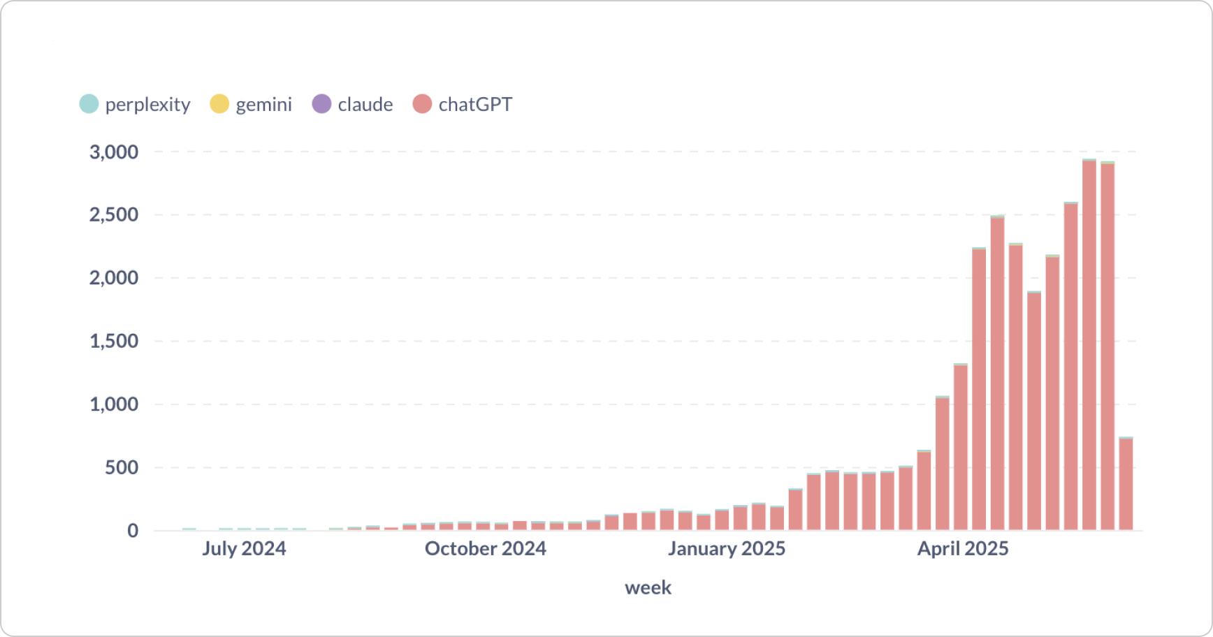 Now why the sudden spike? The most likely theory: GPT-4o’s rollout with default web browsing.