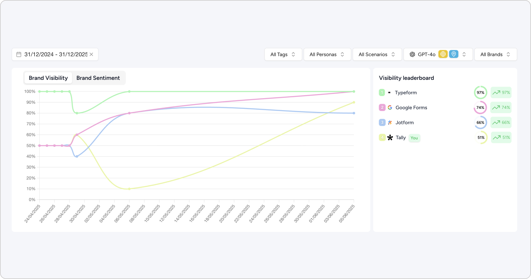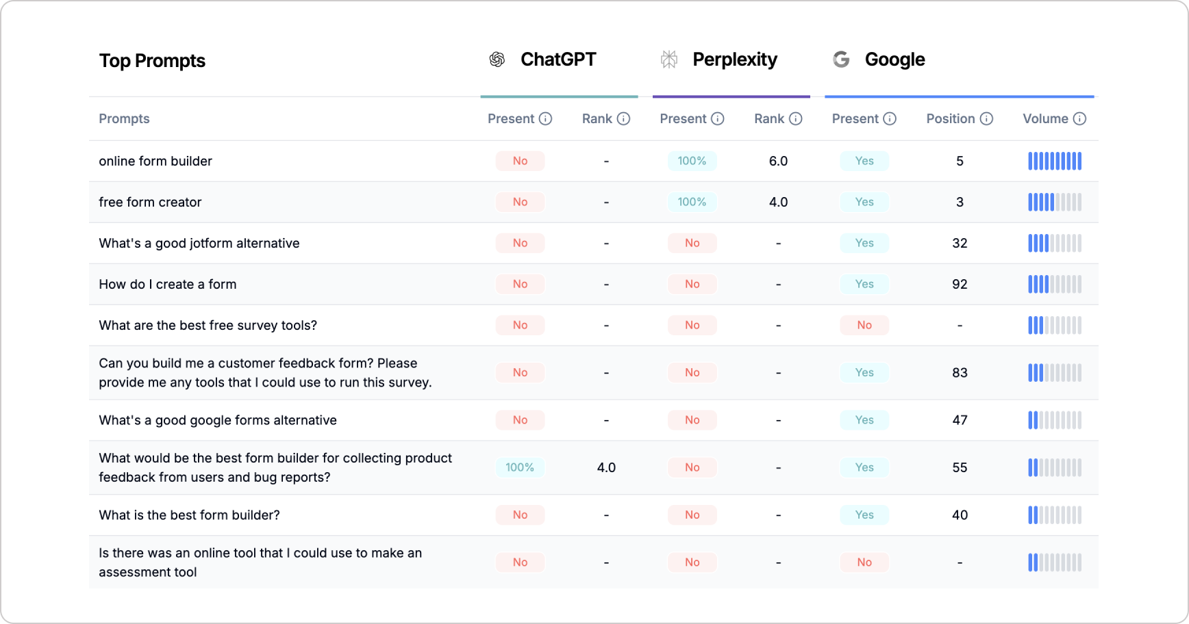 - Launched in April 2025 with improved reasoning, memory, and browsing, it became better at surfacing new or niche tools (like Tally) and more likely to recommend alternatives based on user intent (e.g. “simple or clean form builders”).