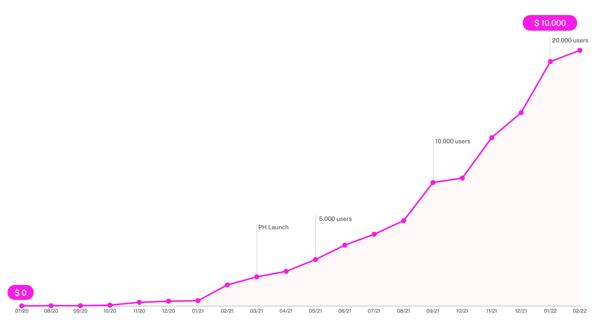 We started building Tally in the summer of 2020 and launched on Product Hunt in March 2021. The past 1,5 year has been eventful to say the least, but last month marks the biggest accomplishment in the short history of Tally: we reached 20.000 users and passed $10k MRR.