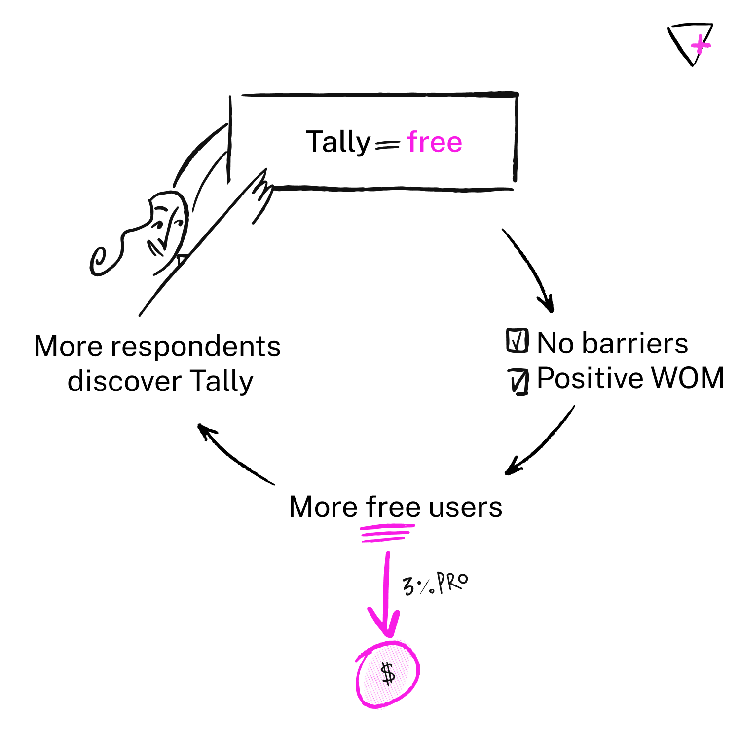 - Offering Tally for free lowers the barrier for people to try it out, and creates positive word of mouth.