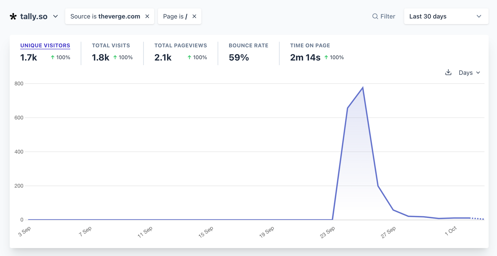 Our blog post about Tally 2.0 has been read by 1.4K visitors during the 2 weeks after launch.